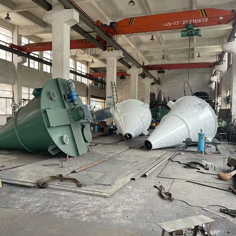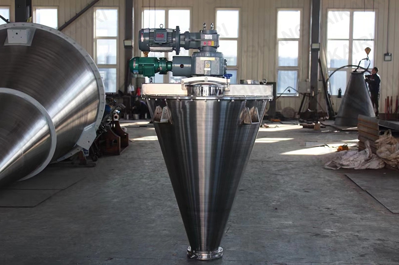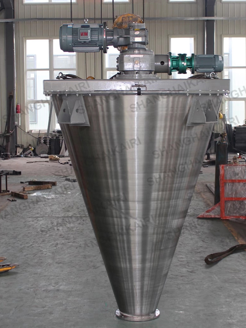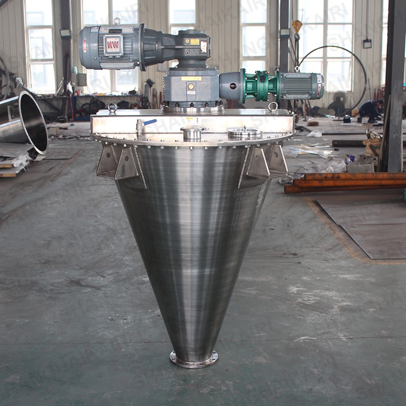 上海凯日专注生产的凯日牌系列双螺旋锥形混合机,广泛应用于染料、钛白粉、明胶、纳米材料、科研、医药、农药、畜药、食品、乳制品、食品添加剂、香精、香料、果粉、方便面调料、酿造、食盐、碘盐、多品种盐、味精、调味粉、咖啡、饲料、饲料添加剂、预混料、浓缩料、化工、助剂、化肥、化学、生物、轻工、冶金、矿山、陶瓷、颜料、涂料、塑料、橡胶、碳素、水泥、外加剂、建材、耐火材料、砼添加剂、电池、锂电新材料、电子等各行各业中粉体与粉体混合,粉体中添加微量液体混合,液体与液体混合,液体与粉体;颗粒、片状、短纤维的组合性混合。对混合物适应性强,对过敏性物料不会产生过热、压馈、磨碎,对比重悬殊和粒度不同的物料的混合不会产生分层、离析等现象。