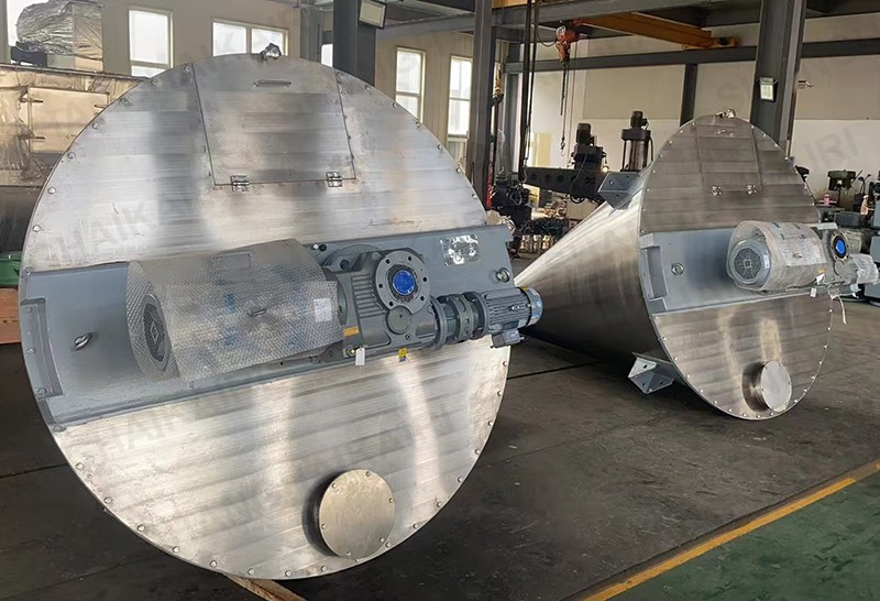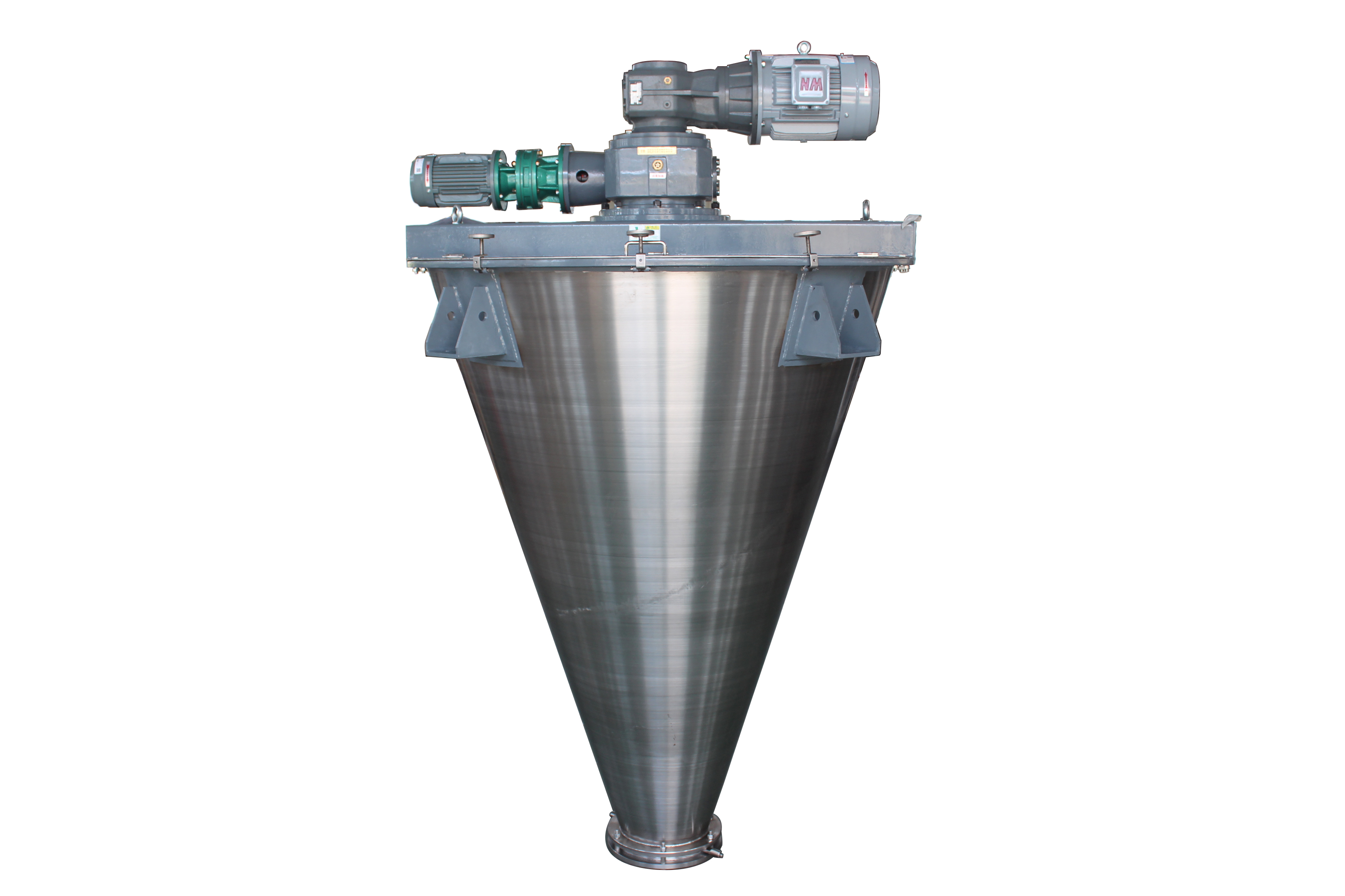 锥形双螺旋混合机可根据混合物料的堆积密度、粒目等因素,选择理想的驱动方式,传动减速机采用:摆线针轮、齿轮与摆线针轮、双蜗轮、齿轮与蜗轮、齿轮与齿轮等。电机可配:普通电机、防爆电机、变频电机等。
