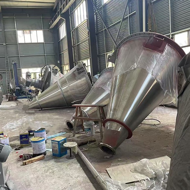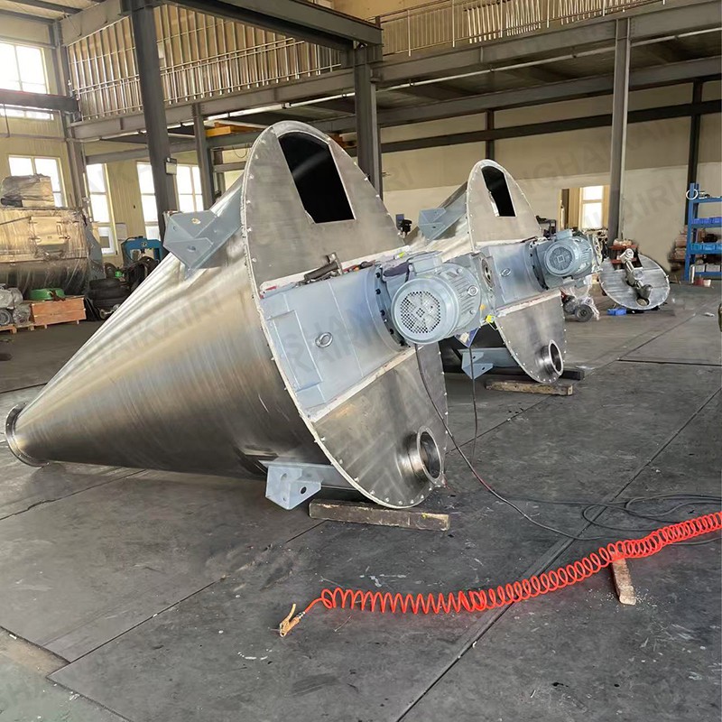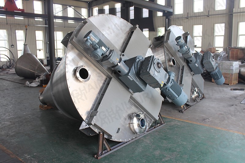 ZSH型双螺旋锥形混合机适用于粉料与粉料、颗粒与粉料、粉料与少量液体的混合,广泛应用于化工、染料、颜料、农药、兽药、医药、塑料及助剂等行业。该机对混合物适应性广,对热敏性物料不会产生过热,对颗粒物料不会产生磨碎,压溃,对比重悬殊和粒度不同的物料组成的混合不会产生分层、离析现象;对粗粉、细粉、纤维或片状物料的混合都有很好的适应性。